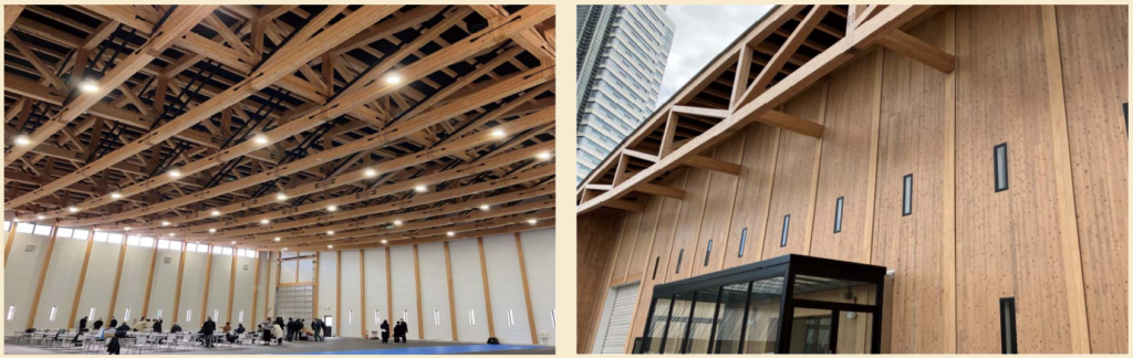 モリーナにある「木造モジュール」は、一般流通木材を規格化・プレ加工し迅速な施工が可能な構造で、建物は将来的に移設・再利用も可能な仕組みになっています。環境への配慮やコスト面も優れており、サステナブル建築の先進例と評価されています。