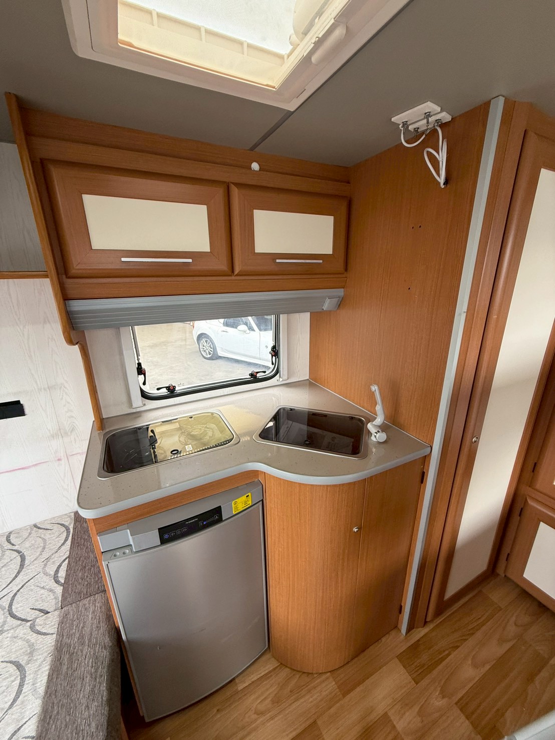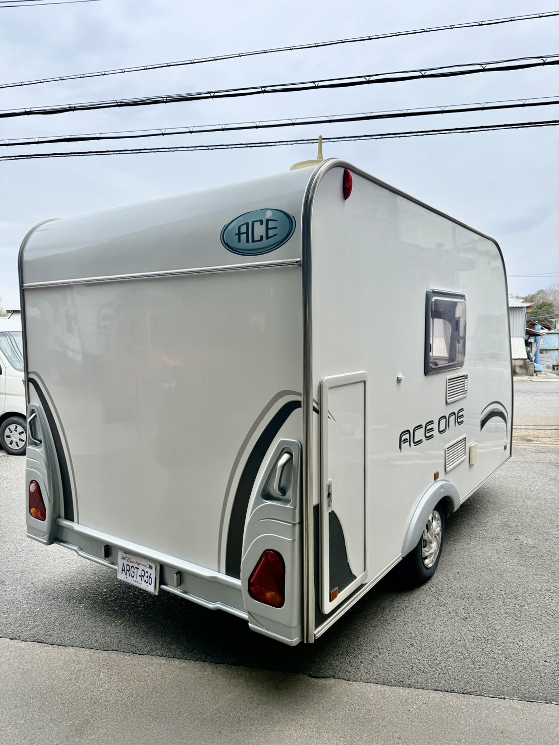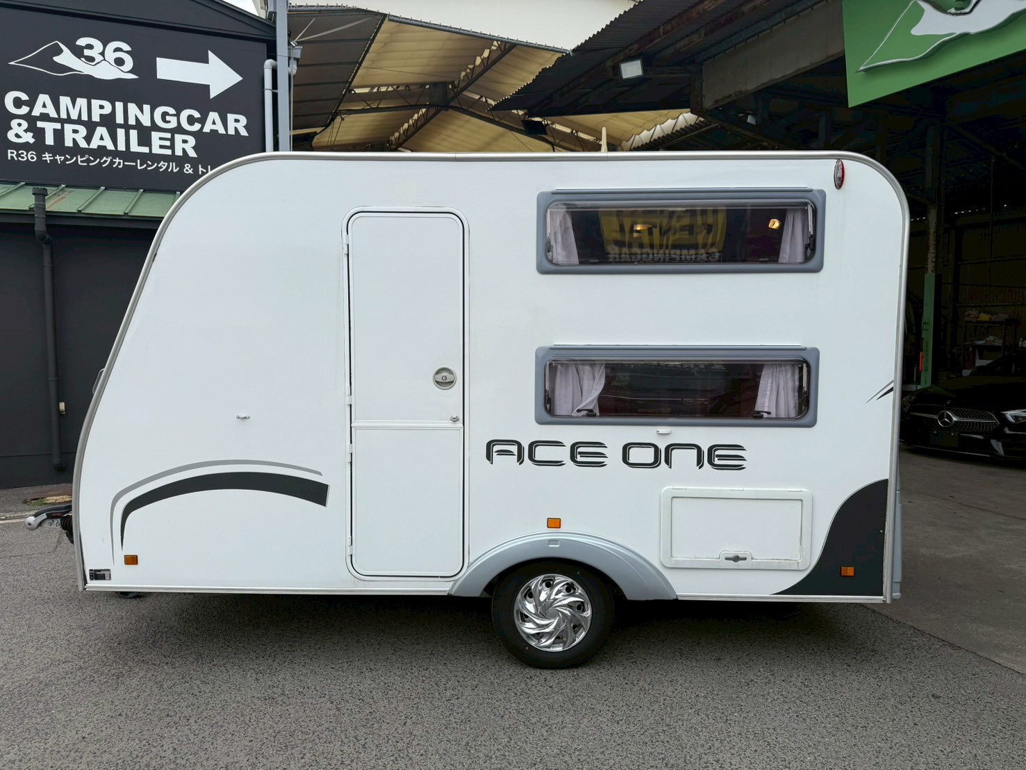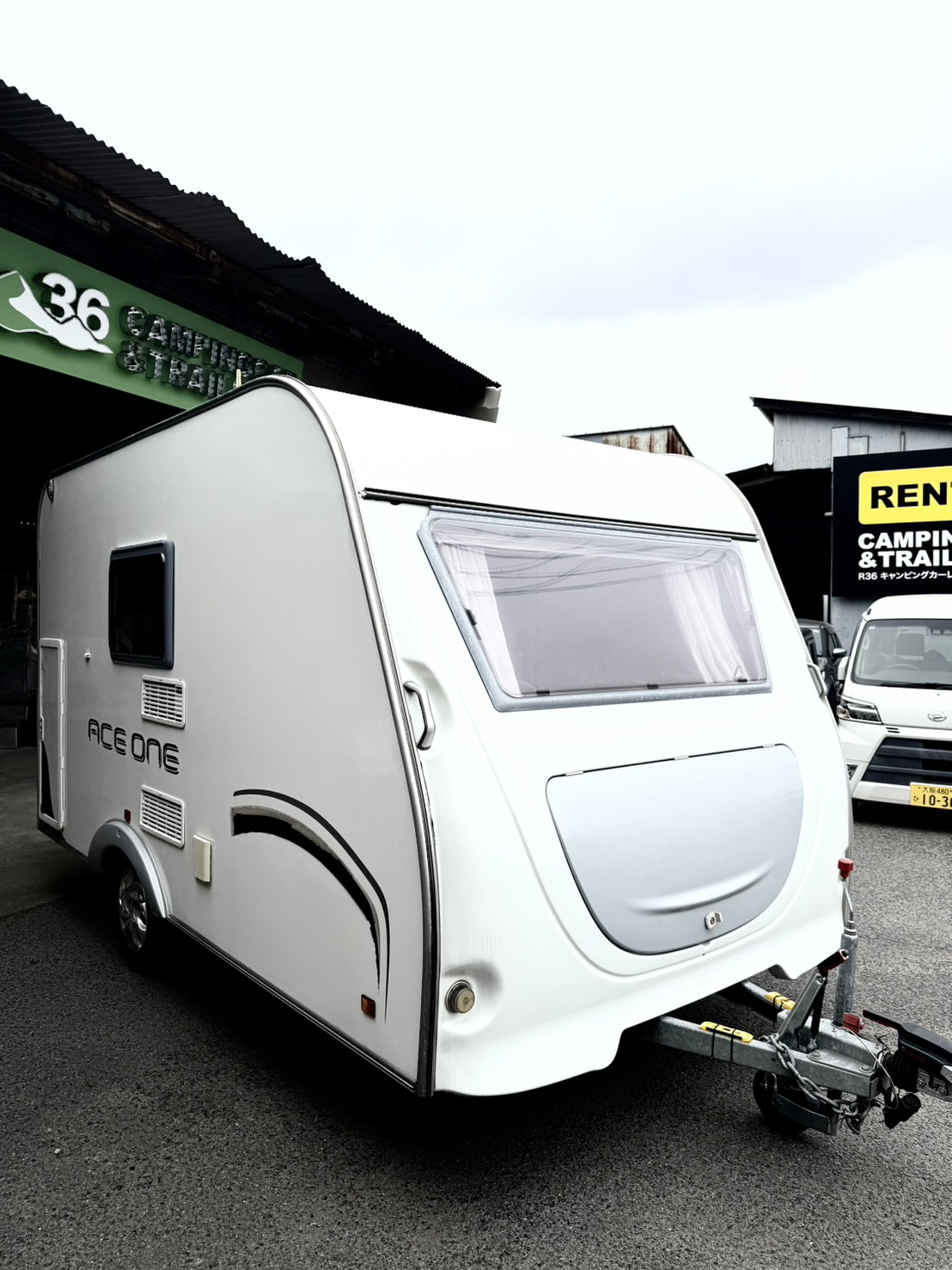 牽引免許要らずの手ごろで扱いやすいトレーラーです。 スペインのACROSS社製で4人就寝、冷蔵庫、シンク、コンロ、シャワーなどの快適装備が充実しております。