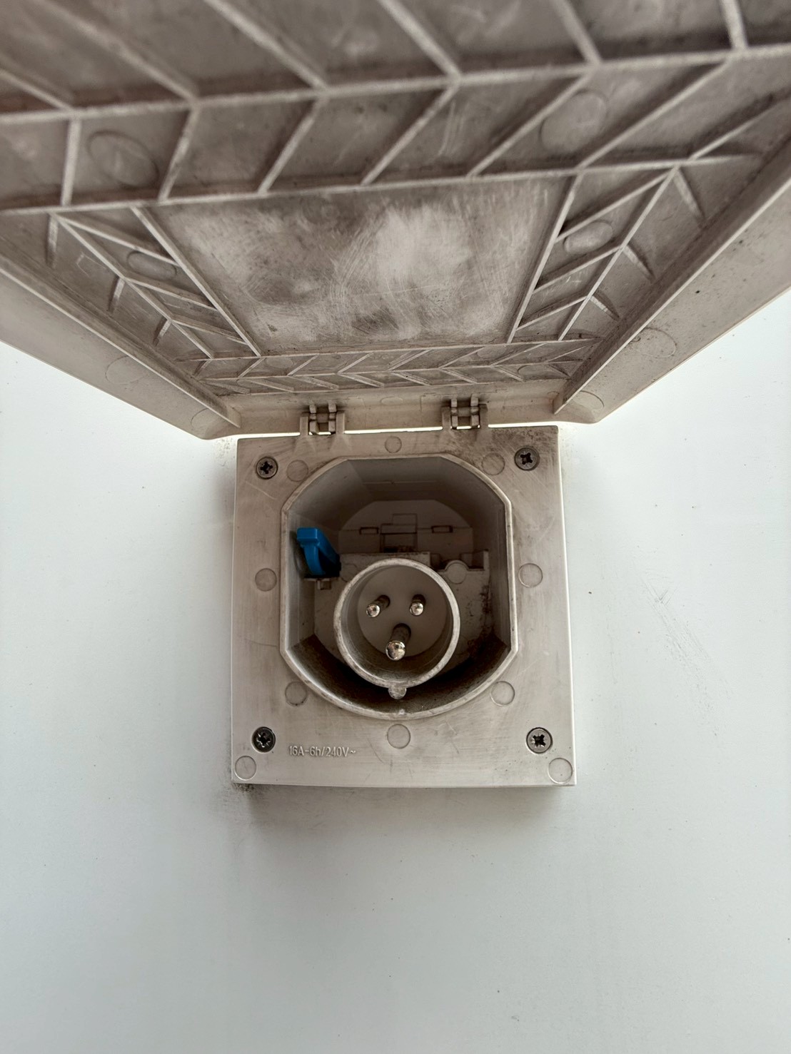 外部電源コンセント取付け部です。 こちらにコンセントを差し込むことにより室内の電気(100V)が自由に使えます。コンセント(x2)も使えます。