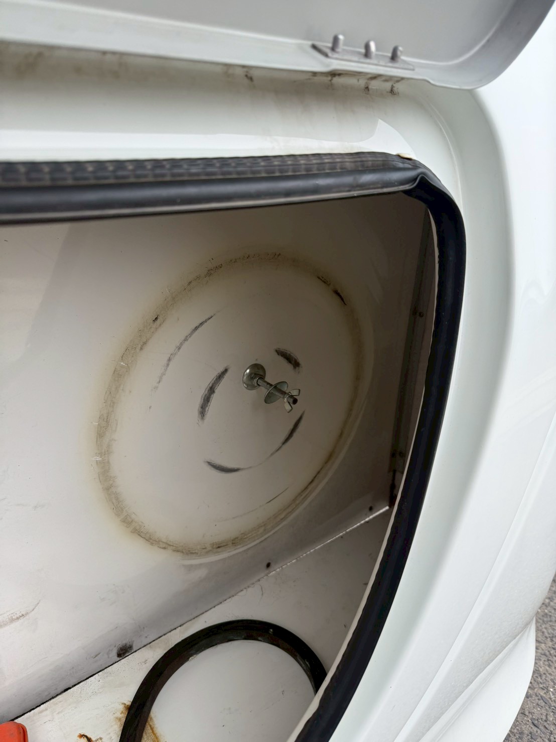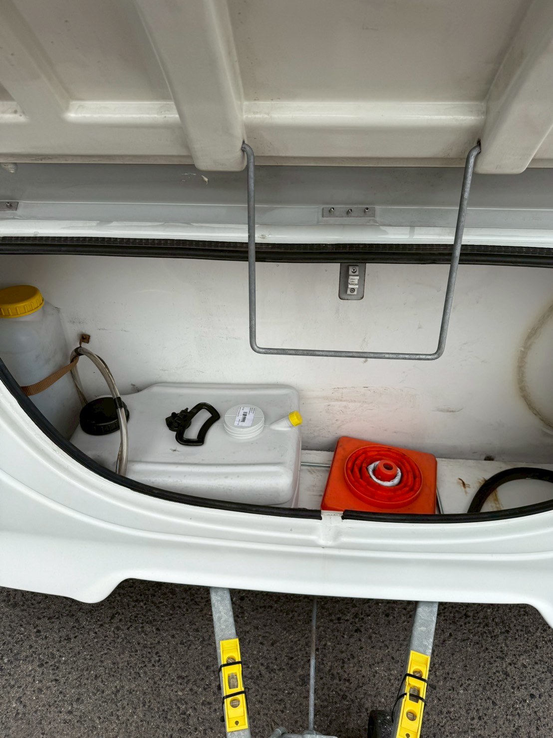 Frトランク。 こちらに、シンク用の給水タンクがあります。現在モーター不良でシンクの水は出ませんが修理可能です。